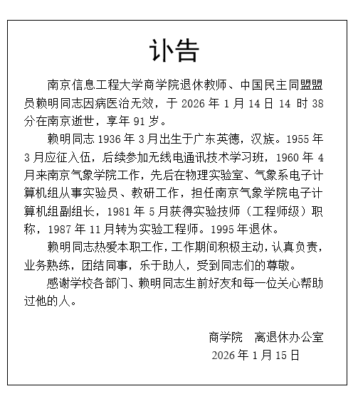 赖明同志讣告
