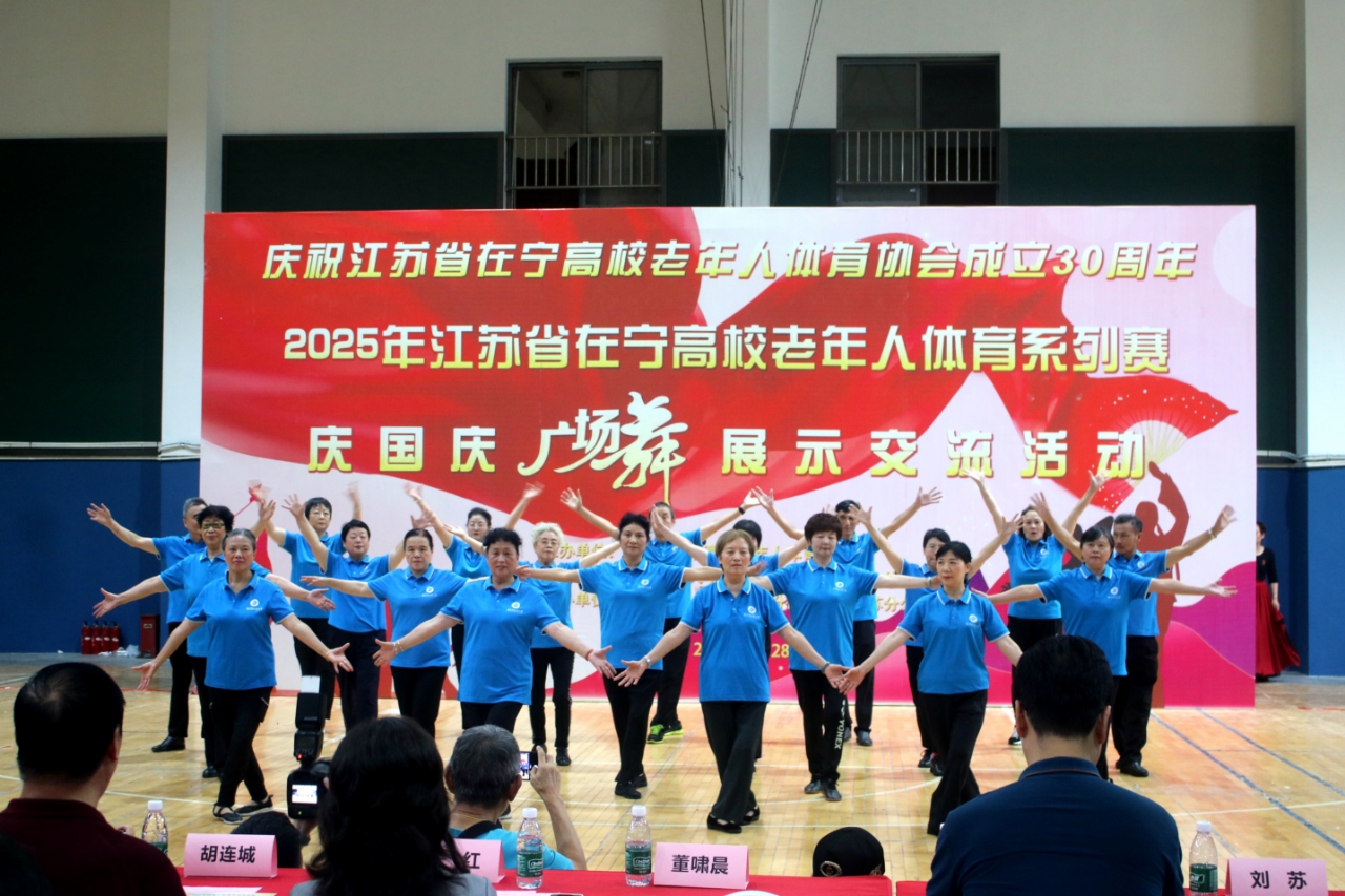 9月28日,我校老同志再次闪亮登场,参加2025年江苏省在宁高校老年人体育协会庆国庆广场舞展示交流活动。伴随着《我们走在大路上》的激昂旋律,他们笑容灿烂,动作刚柔并济,充分展现了我校离退休老同志健康向上、老有所乐、老有所为的时代风采与活力。