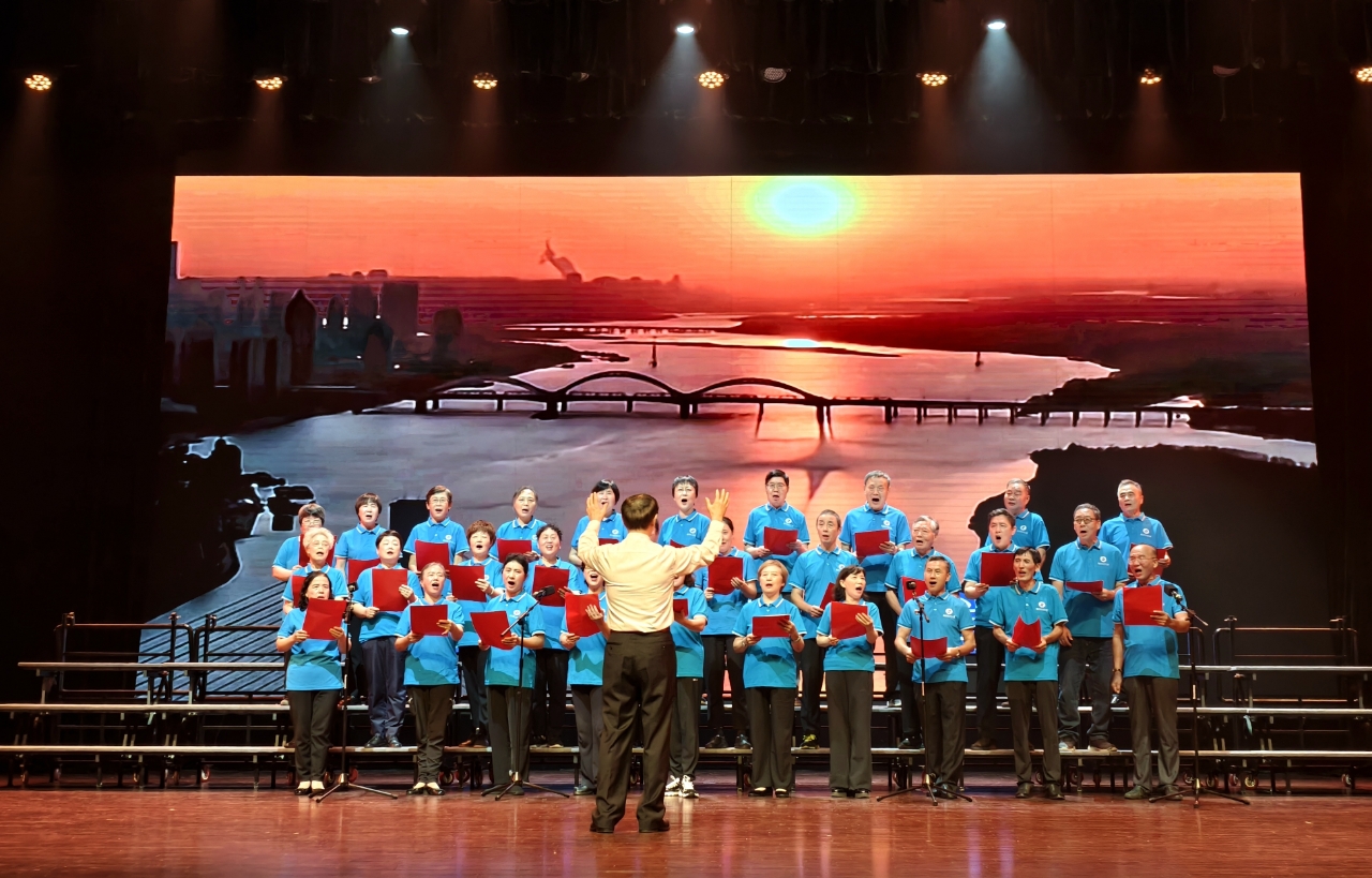 9月27日,我校风云映霞合唱团的30余位老同志参加了“银发颂华诞 红心永向党”为主题的江苏省在宁高校退教协老同志国庆文艺汇演。舞台上,老同志们精神矍铄,情感充沛,以深沉而嘹亮的歌声,倾情演绎了经典曲目《松花江上》和《歌唱祖国》。动人的歌声既唤起了大家对峥嵘岁月的记忆,更是抒发了对伟大祖国繁荣昌盛的真挚祝愿。